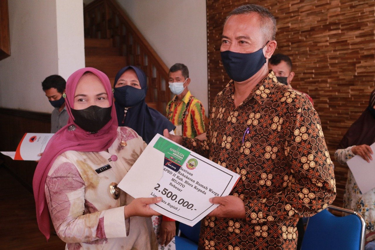 Penerima bantuan Mujito mengungkapkan, rasa terima kasihnya kepada pemerintah dan berbagai pihak, karena pada saat ini dirinya menerima bantuan senilai Rp2,5 juta rupiah dari Pemkab Blora.